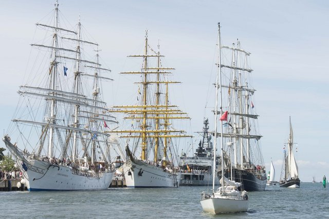 Die größten Schiffe des diesjährigen Traditionssegler-Treffens werden voraussichtlich die Viermast-Bark „Kruzenshtern“ aus Russland (114,5 Meter) und das Vollschiff „Dar Mlodziezy“ aus Polen (108,6 Meter) sein. Zu den weiteren „Giganten“ zählen das Segelschulschiff der Deutschen Marine, die Bark „Gorch Fock“ (89,3 Meter), der Clipper „Stad Amsterdam“ aus den Niederlanden (76 Meter) und das Vollschiff „Christian Radich“ aus Norwegen (73 Meter).
