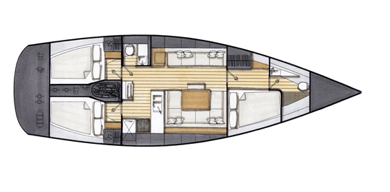 Die Yacht ist funktional, verfügt über neue Bordsysteme und ein Achter-Cockpit, wodurch der zur Verfügung stehende Raum vollständig genutzt wird. Georg Nissen, Yachtkostrukteur bei Contest Yachts, erklärt: „Das Cockpit gewährt der Besatzung Bewegungsfreiheit. Die Trommel der Genua ist unter Deck platziert und das Vordeck ist frei und übersichtlich gehalten. Dank der Einteilung von Winschen und Leinen sind Segeltrimm und übrige Handlungen jederzeit schnell und effektiv ausführbar. Wir haben die 42CS mit einer kleineren Genua, einem größeren Großsegel und gefeilten Salings versehen.” Im Innenraum sind eine Eignersuite und wahlweise eine oder zwei Gästekabinen zu finden.