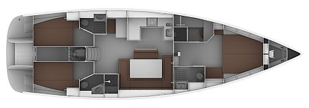 An Deck soll eine Doppelradsteuerung sowie doppelte Ruderblätter für mehr Sicherheit sorgen. Die Genuaschienen befinden sich auf dem Decksaufbau und bieten so die Möglichkeit eines aufgeräumtes Seitendeck. Interessant ist auch die Badeplattform, die sich über die gesamte Breite des Spiegels erstreckt.