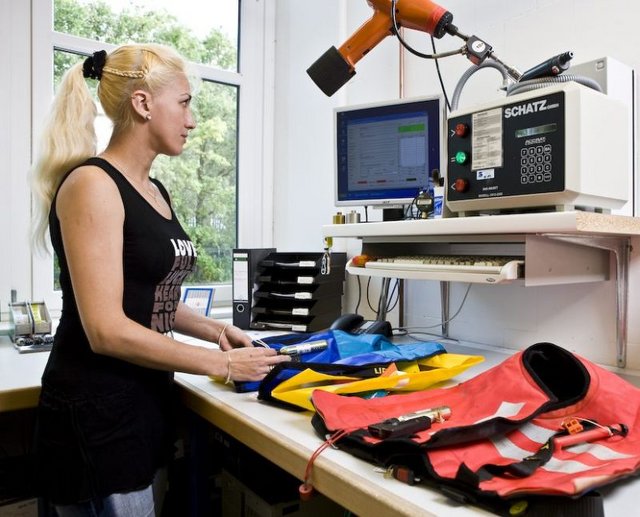 Für diese Arbeiten sind Original-Ersatzteile und Spezialwerkzeuge sowie Fachkenntnisse notwendig. Als Bestätigung einer fachgerecht gewarteten Rettungsweste erhält diese eine Prüfplakette, ähnlich wie das TÜV-Signet beim Auto.
