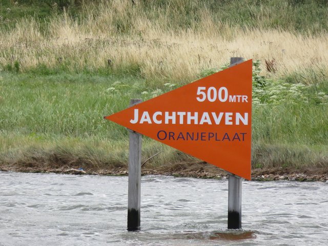 Die Zufahrt vom Veerse Meer ist zwar etwas versteckt, aber an einer Hinweistafel vom Wasser aus erkennbar. Der Hafenkanal ist grün und rot betonnt.